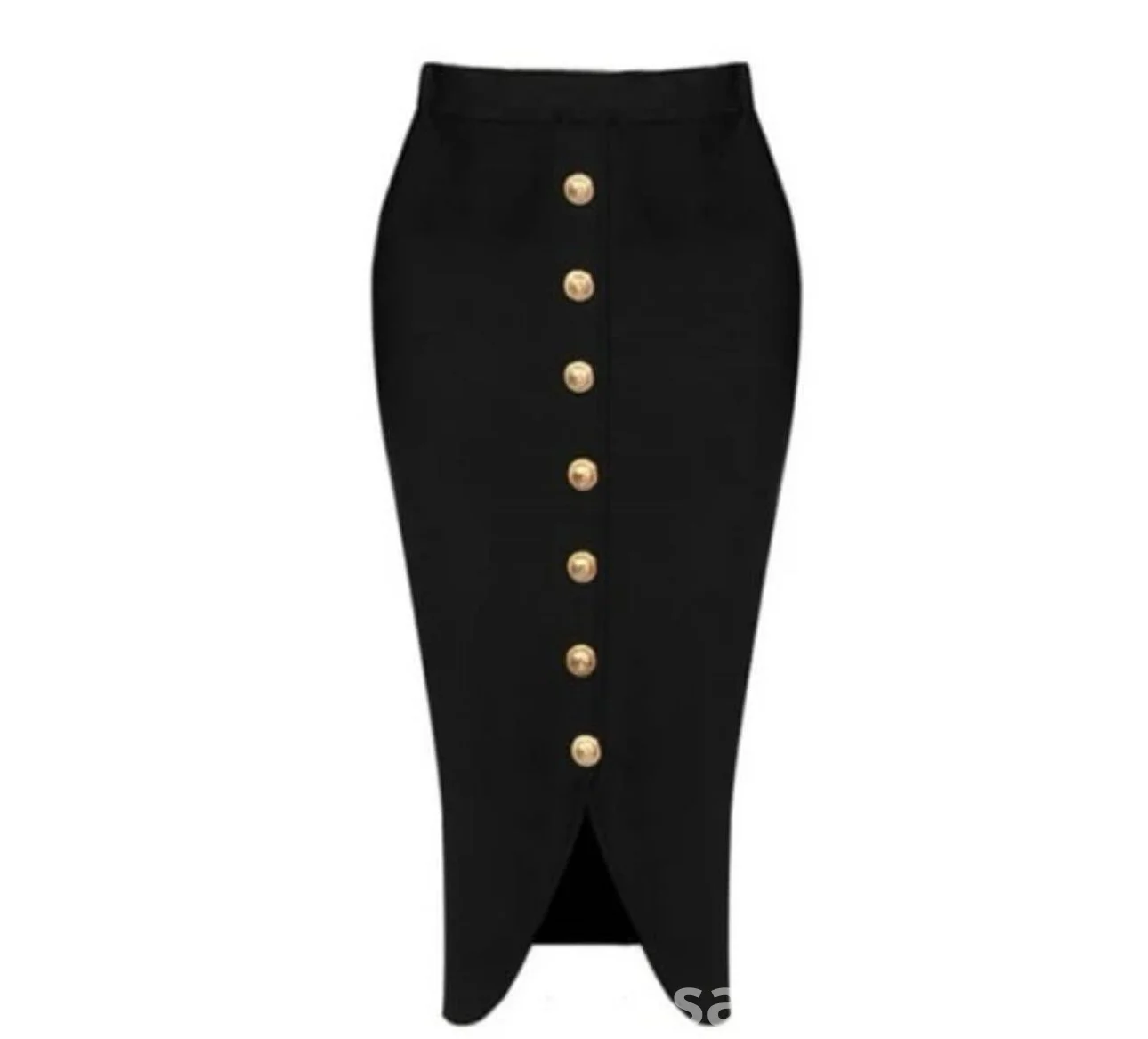 Women's Black High-Waist Button-Front Pencil Skirt (Midi) — Gold Buttons + Front Slit — Office and Occasion Wear, Nairobi Kenya