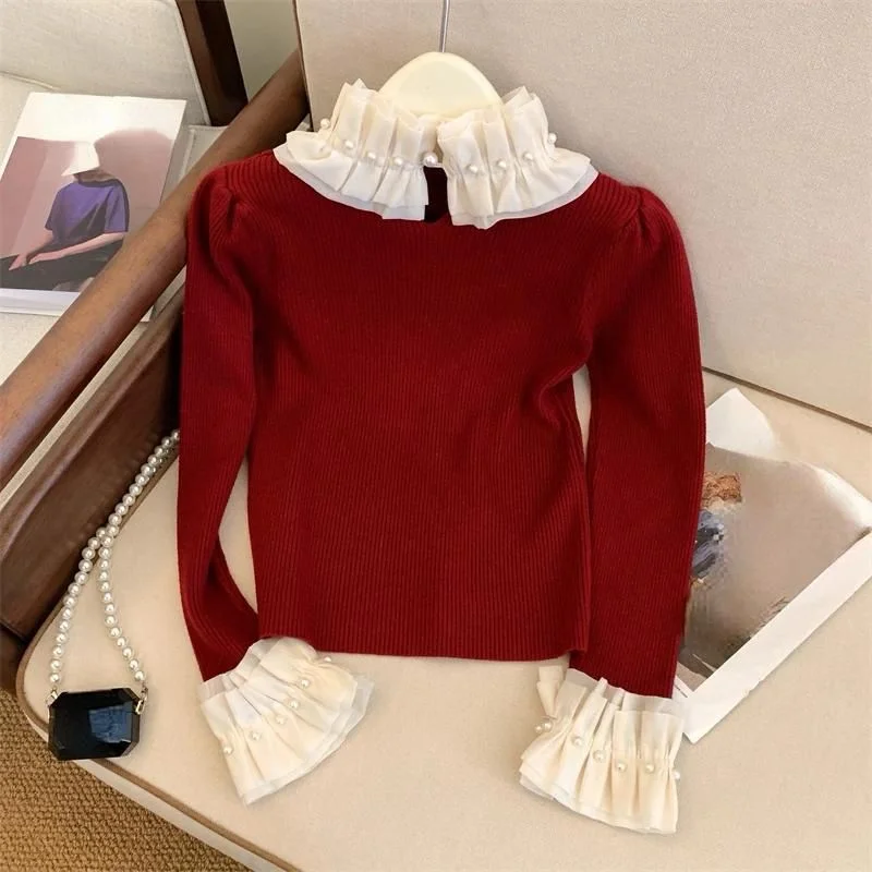 If you want one top that looks classy, feels comfortable, and works across multiple settings, the Red Ribbed Knit Top with White Ruffle Collar & Pearl Cuffs is a standout pick—especially at the current discounted price.