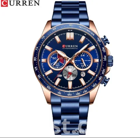 Elevate your wrist game with this premium-looking Curren men’s wrist watch featuring a striking deep blue dial, blue stainless steel strap, and a classy rose-gold tone bezel/case. The sporty chronograph-style sub-dials and tachymeter bezel design give it a high-end finish—perfect for work, weekends, and gifting.
