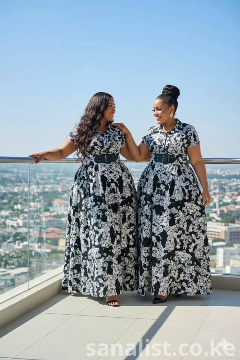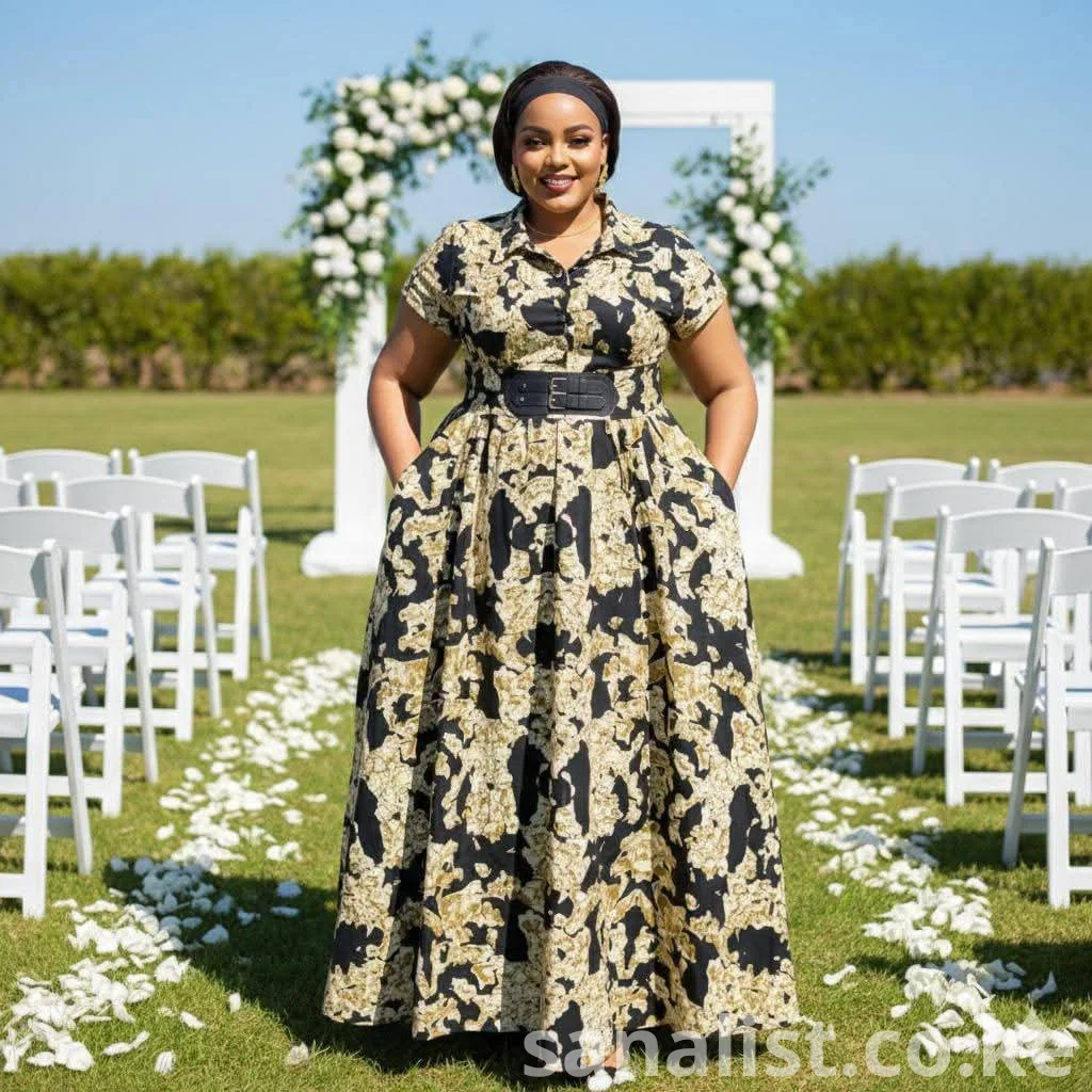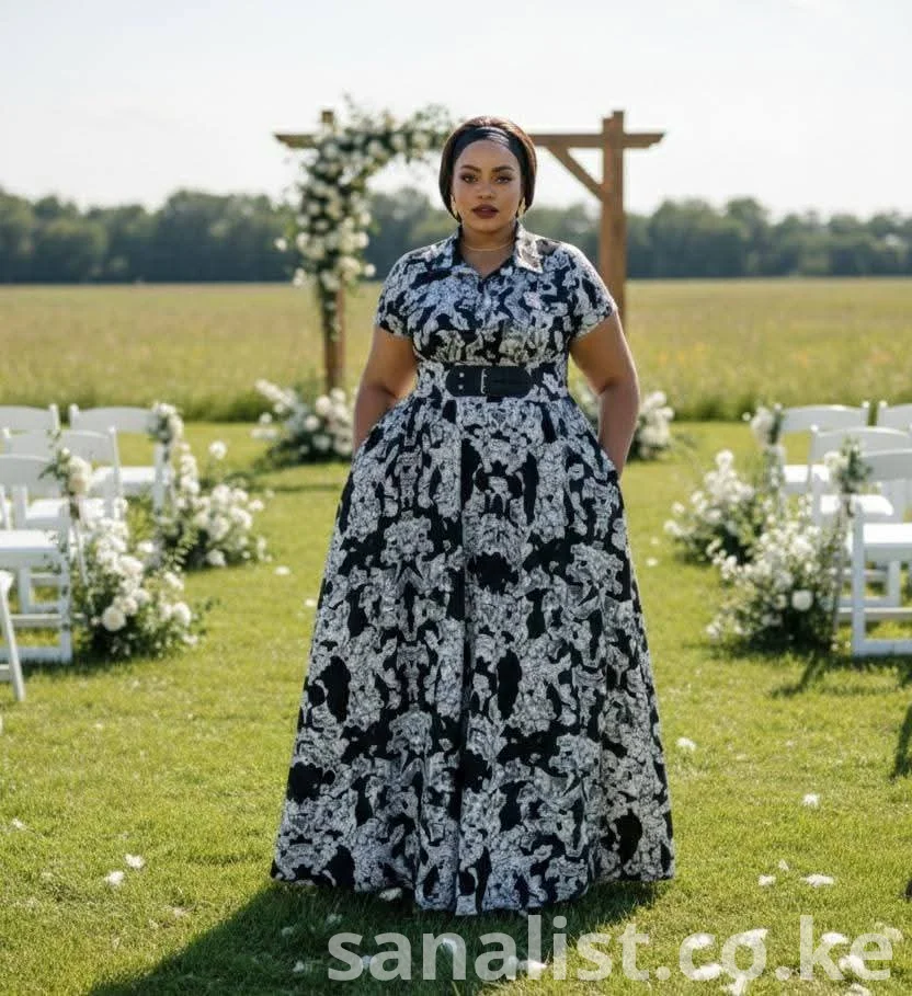 This is an elegant plus size maxi shirt dress designed for curvy women who want a sophisticated yet comfortable look for special occasions. The dress features: