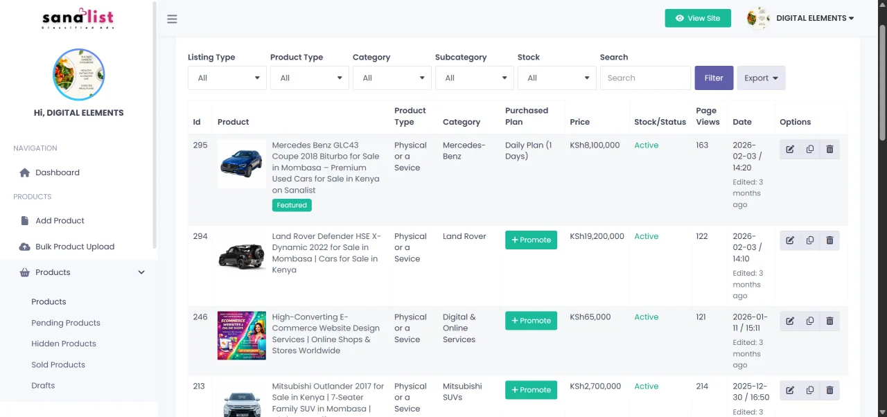 - Go to your profile → Dashboard → Products – Access all your active listings in one place.
