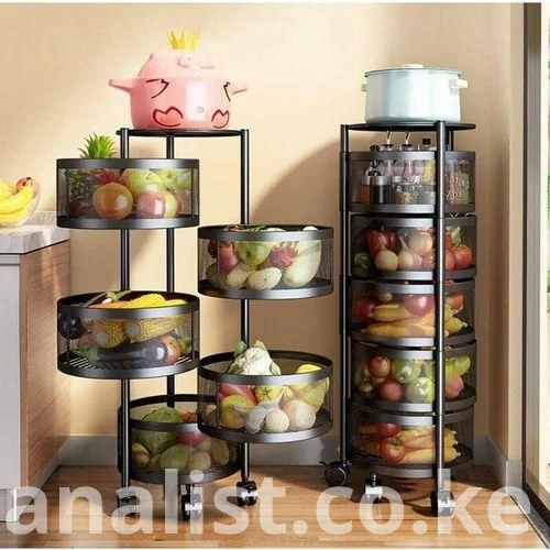 Maximize your kitchen space with this multi-tier rolling storage rack, designed for modern homes in Kenya. Featuring durable, ventilated baskets and smooth-rolling wheels, this organizer is perfect for storing fruits, vegetables, cookware, and household essentials while keeping them fresh and easily accessible.