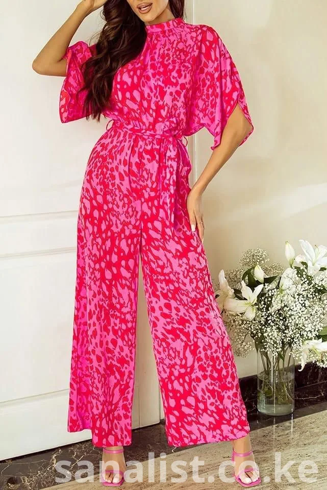 Pink Abstract Print Wide-Leg Jumpsuit (High Neck + Belted Waist) – Rare Flair Kenya | Nairobi (Delivery Countrywide)